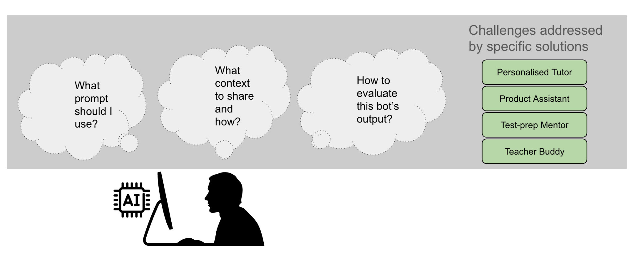These solutions were attempts to fill that gap between “intelligence” and the “user”. Here, the skills users needed in prompting, providing context, and evaluating output were either eliminated or significantly reduced. And this productisation was an act of inclusion: by hiding the prompt/context/evaluation specifics, these solutions were ensuring equitable access to AI for people who would otherwise be left behind.