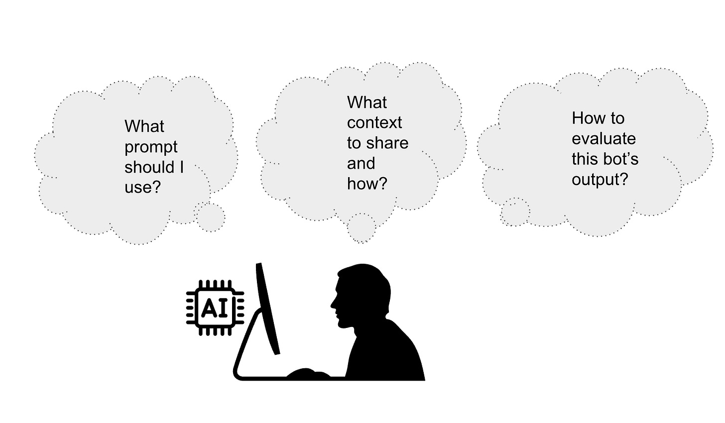 Aside from the matter of iterating over the prompt and choosing the right context based on their org-specific needs, there was also the issue of judging the output from these generic tools. With no expertise on the kinds of errors to look for, or experience with the way these tools can fail, judging such output is not trivial. Put another way, exposing such users directly to the output of ChatGPT-like tools places a lot of burden on them. And given the risk of incorrect output, it can lead them on a wrong path: an outcome worse than offering them no help.